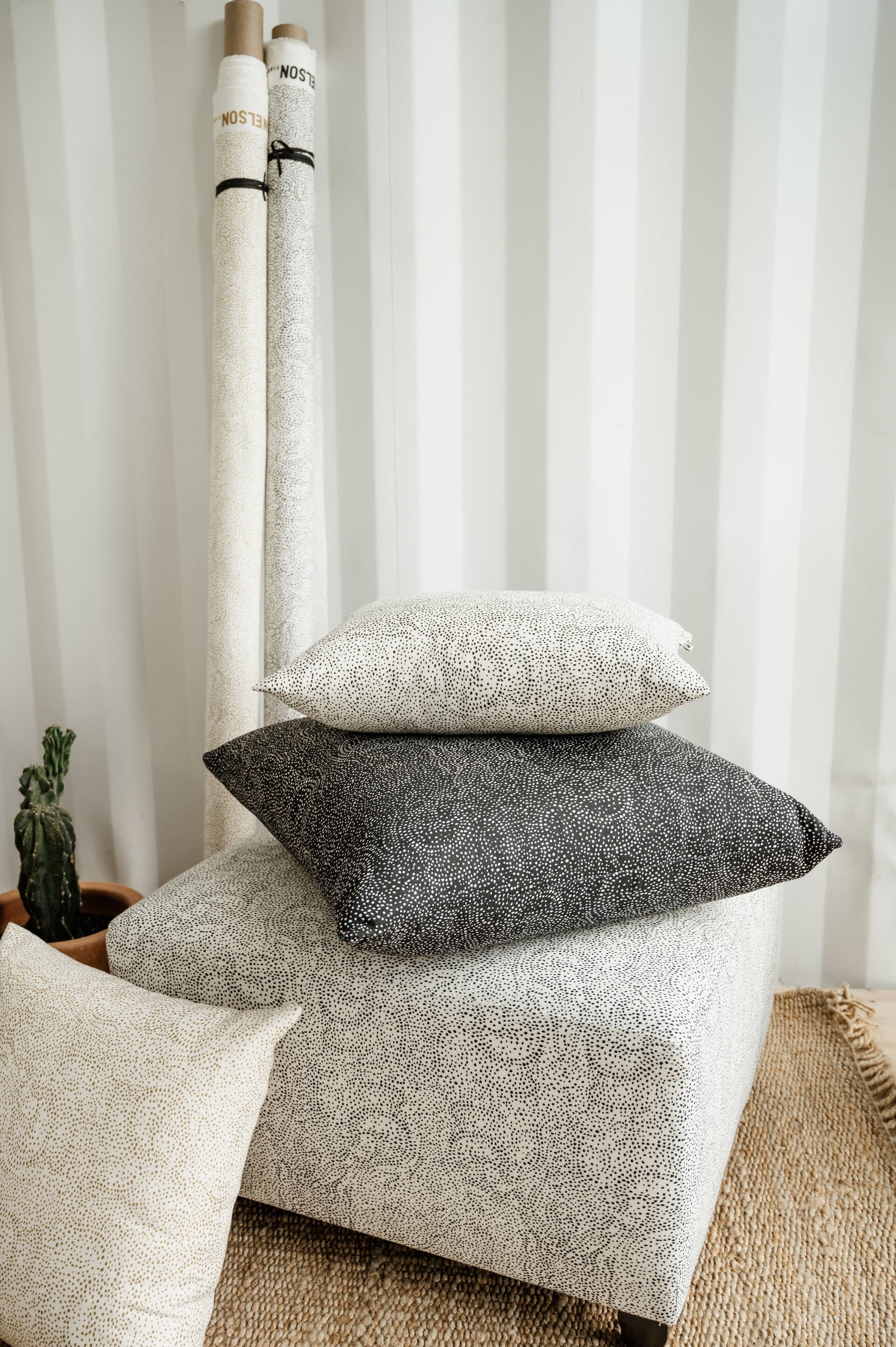 At300Nelson, yardage is printed and cut to order. Our dry goods are crafted by regional artisans. Some variations may occur. Digital representation, woven natural fibers, and the printing process are a few examples of contributing factors. These character marks are indicative of small-batch, bespoke, hand-made pieces. Measurements listed are approximated to the nearest inch. Individual swatches and swatch sets, sorted by design and color, are available for purchase on our site. We recommend purchasing these swatches or swatch sets before moving forward with your projects.